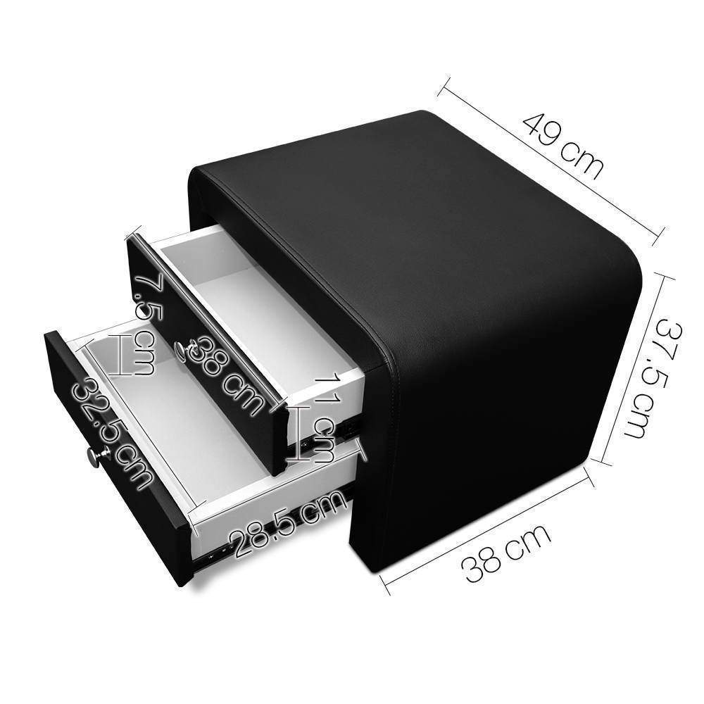 Artiss PU Leather Bedside Table with 2 Drawers - Black