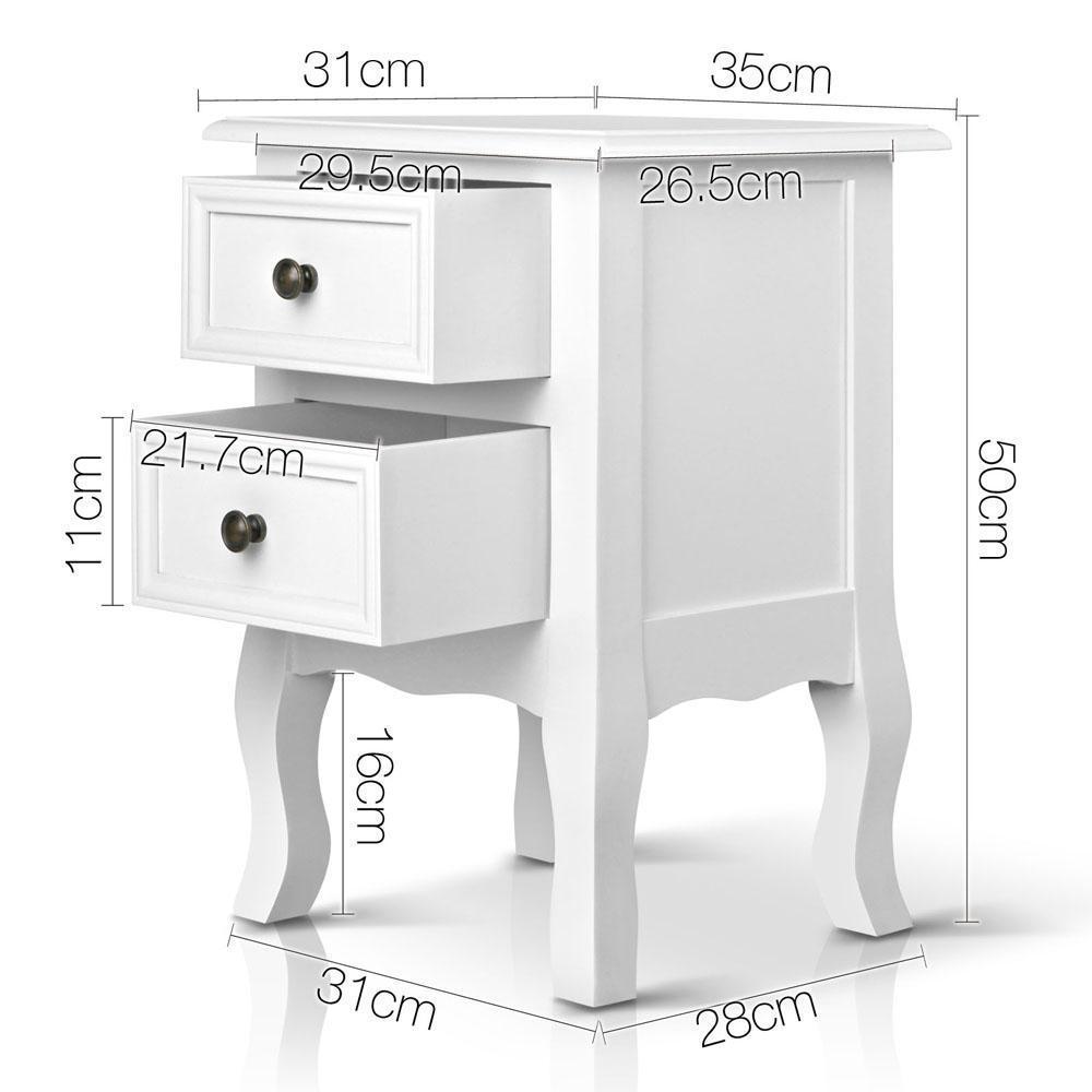 Artiss Vintage Style Bedside Side Table with 2 Drawers - White