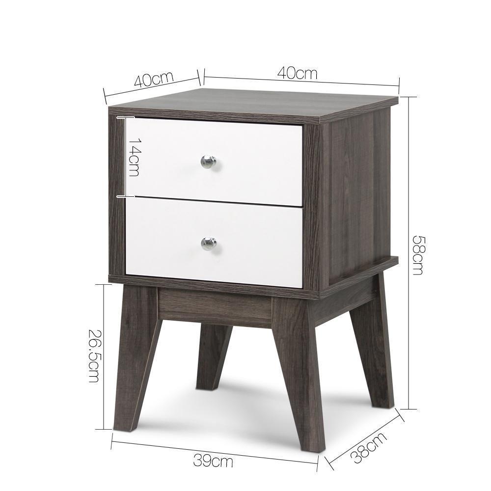 Artiss Bedside Table with Drawers - White & Dark Grey